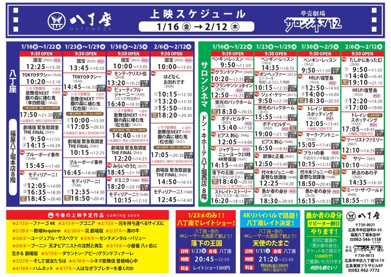 ご鑑賞日の3日前から八丁座・サロンシネマの「指定席券」とお引換えいただけます。