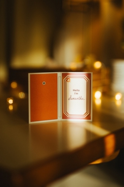 サマンサとの出会いのシーンを再現し、液晶にあたる面に“Hello I'm Samantha”がデザインされています。